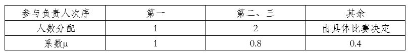 具体说明:主要负责人(不超过两人)乘系数1;其余队员乘以0.8。加分规则见下表。