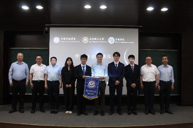 学生分会名单。宇航学会副秘书长姜军为学生分会授旗,并进行了合影留念。