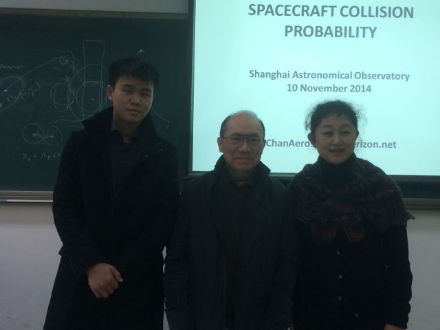 Chan是航天器碰撞领域的权威学者,荣获过2011 Dirk Brouwer Award。此次报告首先介绍了目前国际空间碎片的状况,并予以分类归纳;其次通过建立模型,运用概率密度函数,推导出两物体碰撞概率表达方程;最后将理想模型推广到实际的空间碎片计算当中,对以后的航天器的碰撞问题研究提供了一个有效的途径。报告结束后,Chan与在座师生就相关学术问题进行了进一步的探讨和交流,其严谨的学术作风,深厚的理论水平,平易近人的谈吐让参与报告的师生受益匪浅。