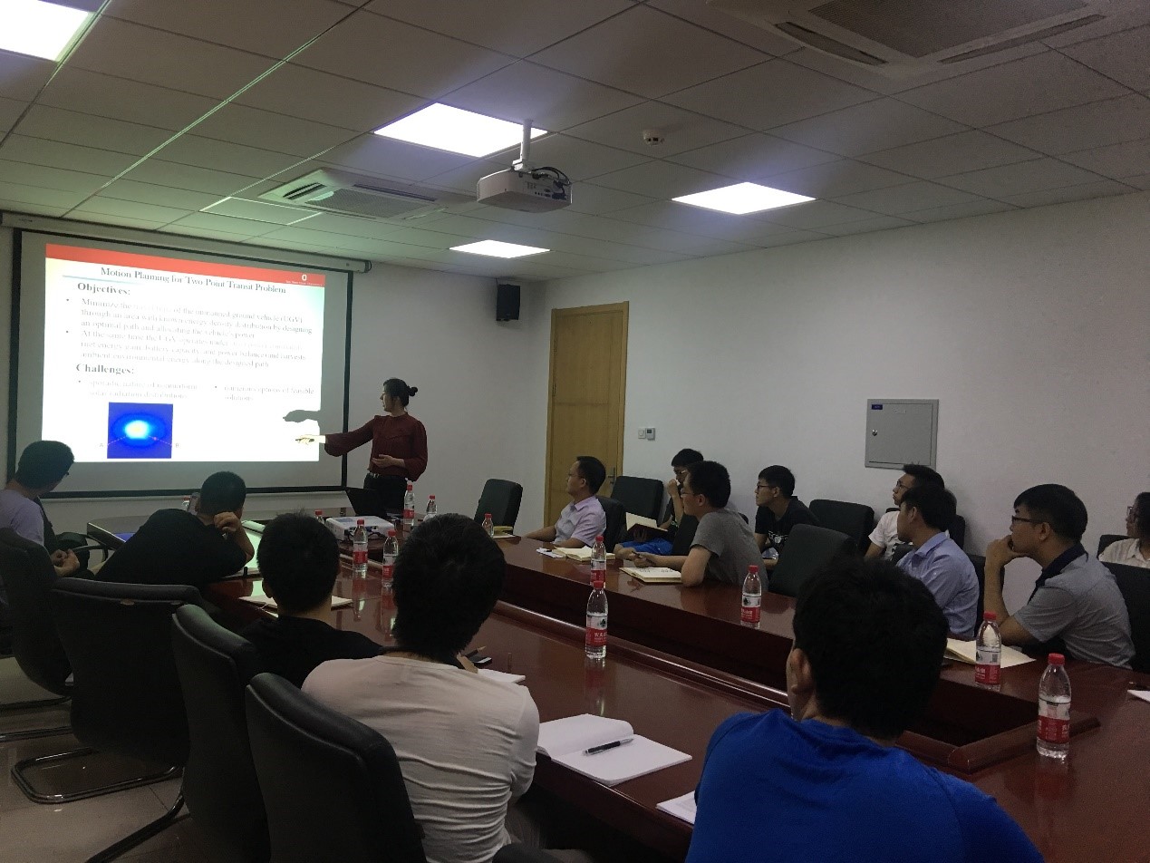 戴教授在第一个报告中介绍了通过多约束运动规划算法实现太阳能驱动的机器人系统的长期自主化技术;在第二个报告中介绍了秩约束半正定规划的理论与算法框架,并介绍了该算法在运动规划、系统辨识、图像重建等众多典型问题中的应用。报告结束后,与会师生与戴教授进行了深入的交流与讨论。