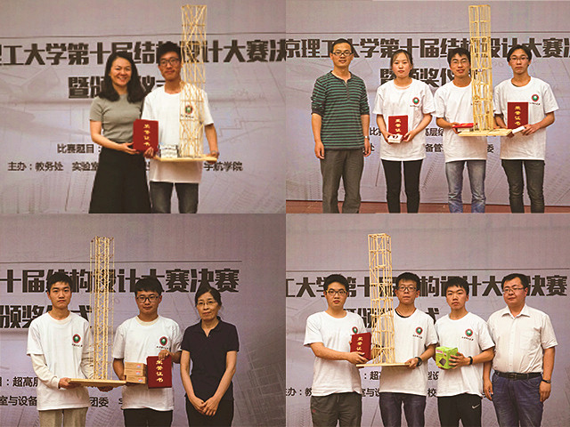 结构设计及制作是一项锻炼学生动手能力、创新精神和团队协作精神的大学生科技活动。这项比赛对于加深学生对力学类课程的理解,培养学生理论联系实际的能力以及训练学生的开创性思维方式均有重要意义。本次大赛参赛学生分布面广,学生参赛的积极性高,对繁荣学校创新氛围、推动学生科技活动起到了良好的作用,是创新人才培养模式的有力实践。