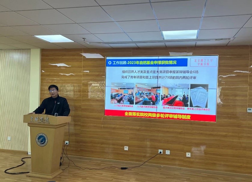 在宇航大310会议室召开2024年度国家自然科学基金申报动员会,学院领导班子、学科责任教授、科教团队负责人、教师代表等共计60余人参加了本次会议,会议由副院长荣吉利主持。会议特别邀请校基础科学研究院办公室主任徐灏、项目主管刘文清到会指导。